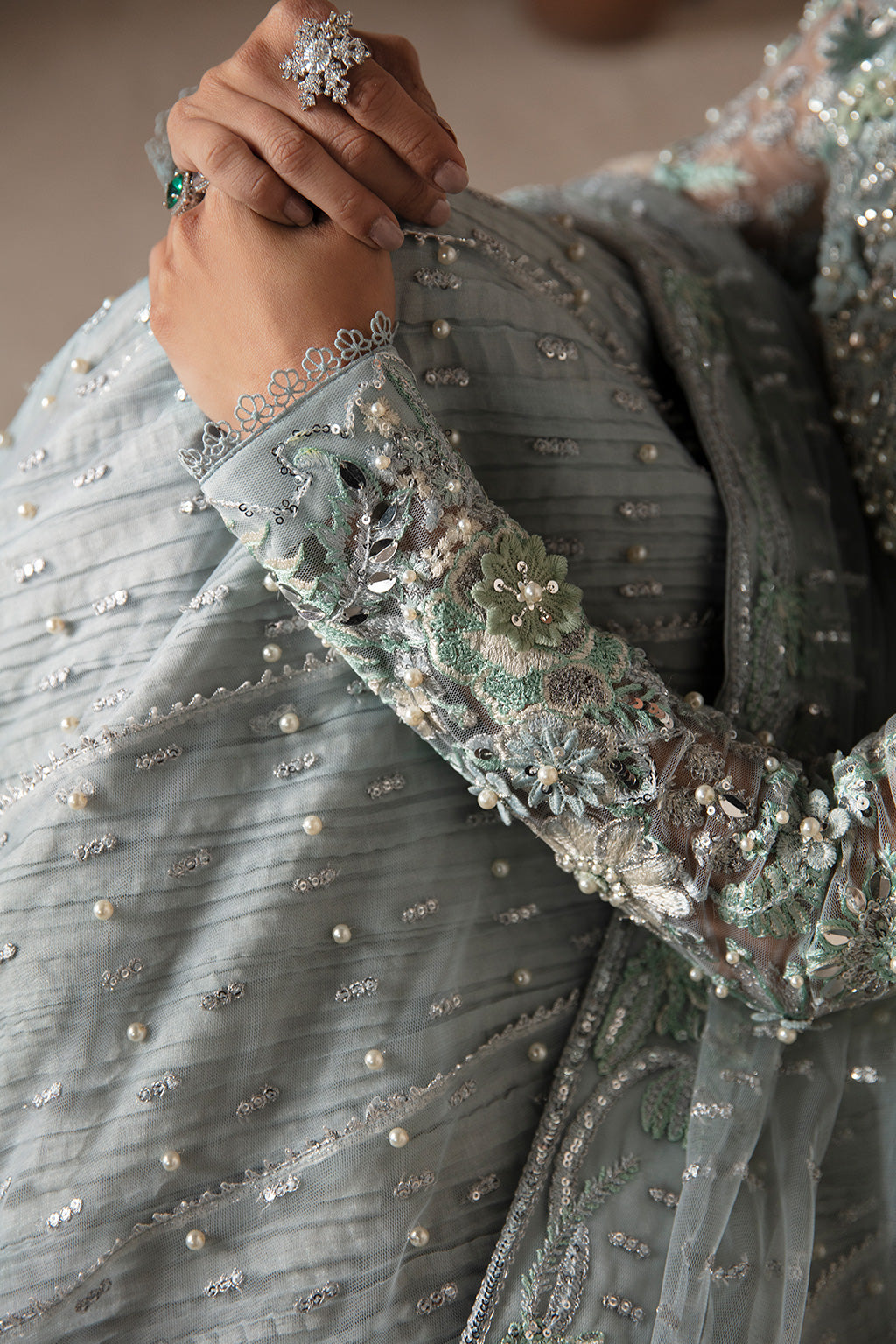 - Embroidered Hand Embellished Sleeves (Net) 2 pc